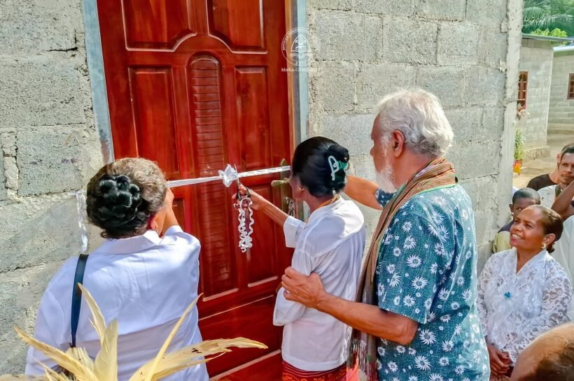 DILI, 22 Juñu 2025 Primeiru Ministru (PM), Kay Rala Xanana Gusmão ofisialmente entrega uma foun bá uma-ka’in hitu (7) iha aldeia Becuse-Kraik, Suku Becora, postu administrativu Kristu Rei, munisípiu Dili, domingu (22/06/2025). Serimónia entrega ne’e hahú ho tara tais hosi família hitu ne’e bá Primeiru-Ministru, kontinua ho tesi fita no bensaun bá uma foun sira…